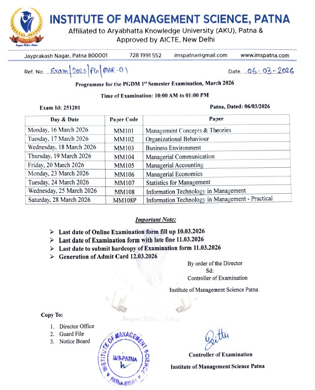 Institute of Management Science (IMS) is a premier educational institution committed to nurturing future leaders, professionals, and entrepreneurs through quality education, innovation, and practical learning. The institute is dedicated to excellence in management education, skill development, and career-oriented programs that meet the evolving demands of industry and society.